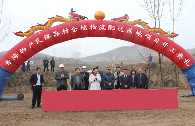 2014年4月11日9時(shí)18分,青海物產(chǎn)民爆器材倉(cāng)儲(chǔ)物流配送基地項(xiàng)目開工儀式在大通縣長(zhǎng)寧鎮(zhèn)上孫家寨村項(xiàng)目建設(shè)現(xiàn)場(chǎng)舉行。