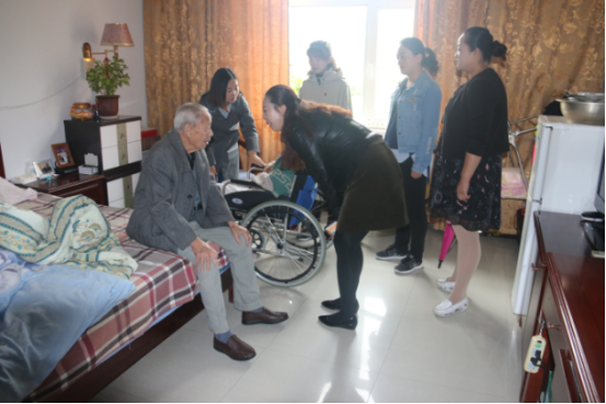 互動游戲結(jié)束后,志愿者們參觀老人們的居所,并陪伴在老人們身邊說著貼心的話。一對結(jié)婚60多年的老人,始終形影不離、相互扶持,相濡以沫。老奶奶激動的對志愿者說:"你們能來看望我們,噓寒問暖,使我們感到非常親切。"老年公寓負(fù)責(zé)人說:"你們的到來使老年公寓熱鬧起來,為老人們送來了歡樂和溫馨"。