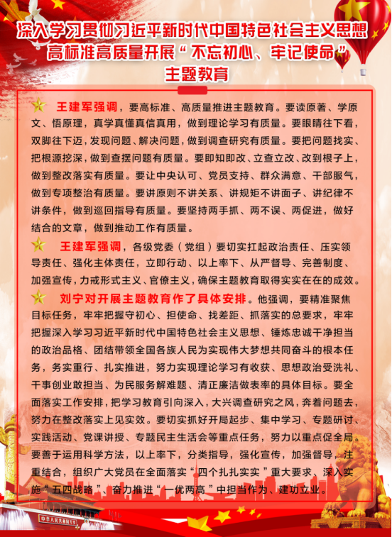 由集團(tuán)黨委副書記、總經(jīng)理劉玲同志宣讀《集團(tuán)黨委開展"不忘初心、牢記使命"主題教育實(shí)施方案》。集團(tuán)黨委書記、董事長王玉輝同志作了"不忘初心、牢記使命"主題教育動(dòng)員講話,對(duì)集團(tuán)系統(tǒng)開展主題教育工作進(jìn)行了安排部署,要求把主題教育與完成本單位轉(zhuǎn)型升級(jí)、項(xiàng)目建設(shè)、生產(chǎn)經(jīng)營等工作任務(wù)結(jié)合起來,切實(shí)把主題教育成果轉(zhuǎn)化為企業(yè)發(fā)展的強(qiáng)大動(dòng)力,推動(dòng)青海物產(chǎn)高質(zhì)量發(fā)展。省委"不忘初心、牢記使命"主題教育第十二巡回指導(dǎo)組組長任正德同志做了指導(dǎo)講話。充分肯定了集團(tuán)黨委的前期工作,認(rèn)為會(huì)議準(zhǔn)備比較充分,有效統(tǒng)一了干部職工的思想,制定的主題教育《實(shí)施方案》操作性強(qiáng),目標(biāo)任務(wù)具體,動(dòng)員講話政治站位高,思想認(rèn)識(shí)深,工作思路清晰。同時(shí),結(jié)合工作組的職責(zé)就落實(shí)主題教育各項(xiàng)任務(wù)講了六點(diǎn)意見。一是聚焦根本任務(wù);二是把握"十二"字總要求;三是緊扣"五句話"總目標(biāo);四是落實(shí)"四個(gè)貫穿";五是抓實(shí)"六項(xiàng)重點(diǎn)"舉措;六是力戒形式主義,嚴(yán)禁主題教育走形式、走過場(chǎng)。