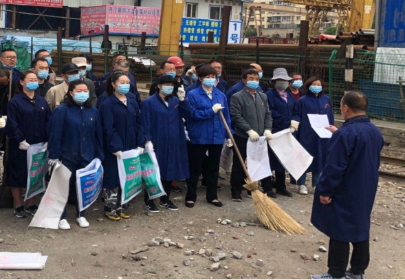 在三名黨支部書記的帶領(lǐng)下,黨員們分工明確、有條不紊,延鐵路專用線由南向北對積存垃圾、建筑垃圾、雜草進行清除?;顒又校h員們充分發(fā)揚不怕臟、不怕累的精神,有的掃地、有的撿拾垃圾、有的拔除雜草,呈現(xiàn)出一片熱火朝天的勞動景象。經(jīng)過一個多小時的勞動,鐵路專用線兩側(cè)垃圾得到徹底地清除。
