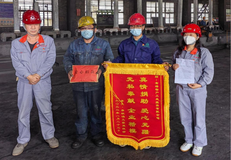 (物產(chǎn)工投公司 訊 任蕊/文攝)“謝謝公司領(lǐng)導(dǎo)和同志們的關(guān)心,謝謝、謝謝……”當(dāng)物產(chǎn)工投公司陽極組裝車間職工李文雙手接過這包充滿了關(guān)心和溫暖的愛心捐款時,強忍的淚水早已決堤,疲憊的臉上多了一絲幸福和希望。