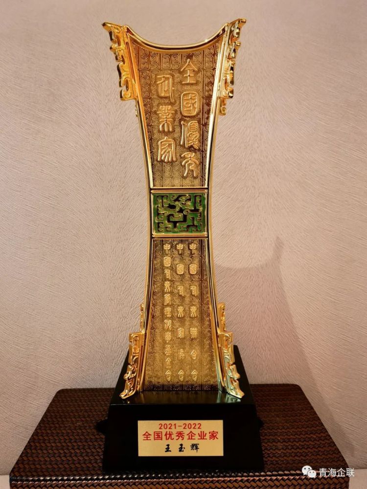 與會領導為青海物產(chǎn)集團黨委書記、董事長王玉輝頒發(fā)獎杯