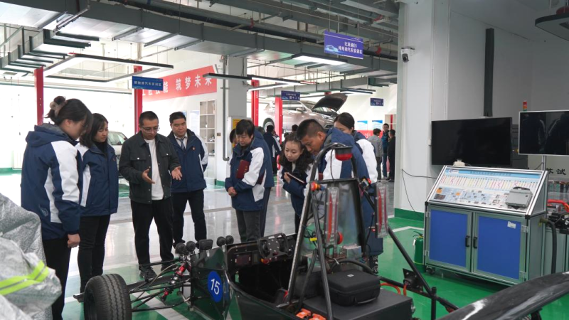 在參觀比亞迪E5純電動車實訓區(qū)時,大家看到了學院2023年全國行業(yè)職業(yè)技能大賽二等獎作品的技術(shù)“含金量”,饒有興趣地了解了繪圖-備材-制作-成型的具體過程,以及對轉(zhuǎn)動、逃生、行駛、焊接、拆裝、車架與車身的測試。高校的科研成果凝聚了工匠精神傳承和“惟專惟精、匠人匠心”的人才培養(yǎng)理念,在提升職業(yè)道德修養(yǎng)、增強專業(yè)技術(shù)能力、發(fā)展創(chuàng)新創(chuàng)業(yè)能力等方面全面融入了工匠精神培育。在場的黨員仔細觀摩,向創(chuàng)作單位投以敬佩的眼光。雙方在“工匠精神是培養(yǎng)高素質(zhì)技術(shù)技能人才的目標導向,是推動產(chǎn)教融合、校企合作的重要實踐途徑”達成共識。