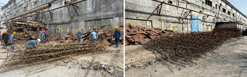 活動中,大家通過分工協(xié)同,密切配合,一部分黨員進行拆卸分裝,一部分黨員撿拾散落鐵皮,一部分黨員轉運碼放,將擋雨板和鋼筋進行分離,同時將鋼筋整齊碼放。經過一下午的辛勤勞動,老系列廠區(qū)一側拆解下來的擋雨板及鋼筋被分離,本次活動不僅對廢舊材料應收盡收,更將可重復利用材料進行二次分揀,真正實現物盡其用。