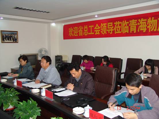 2012年12月13日下午,省總工會(huì)第六考核組組長(zhǎng)、省總副巡視員兼法律保障部部長(zhǎng)李忠云、考核組成員、省總機(jī)關(guān)黨委專職副書記呂華、考核組成員、省總組織部副調(diào)研員姬紅捷、考核組成員、省總經(jīng)濟(jì)部魏紅巖一行蒞臨青海物產(chǎn)集團(tuán),對(duì)物產(chǎn)工會(huì)2012年度工作開展情況進(jìn)行考核。