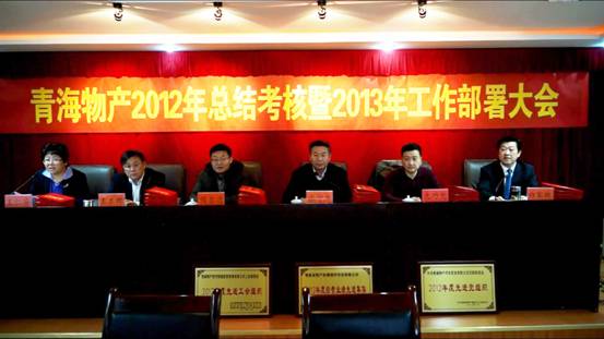 2013年1月25日,集團(tuán)總公司在集團(tuán)一號(hào)會(huì)議室召開(kāi)"青海物產(chǎn)2012年總結(jié)考核暨2013年工作部署大會(huì)"。集團(tuán)領(lǐng)導(dǎo),集團(tuán)中層干部,受表彰的先進(jìn)個(gè)人、職工代表及退休干部代表參加會(huì)議,省國(guó)資委領(lǐng)導(dǎo)張守杰帶領(lǐng)考核小組蒞臨大會(huì)。