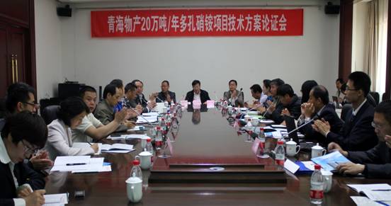 青海物產(chǎn)工業(yè)投資有限公司20萬(wàn)噸/年多孔硝銨項(xiàng)目技術(shù)方案論證會(huì)于2013年5月17日-19日在青海西寧召開(kāi),省物產(chǎn)集團(tuán)總公司總經(jīng)理王玉輝、副總經(jīng)理耿保平、北川工業(yè)園管委會(huì)副主任薛萬(wàn)革、建行西寧支行副行長(zhǎng)王硯宏蒞臨會(huì)議指導(dǎo),會(huì)議由物產(chǎn)工投常務(wù)副總經(jīng)理常海寧和專(zhuān)家委員會(huì)主任分別主持。煙臺(tái)萬(wàn)華高級(jí)工程師王全文、山西天脊高級(jí)工程師劉金亮、湖北鐘祥凱龍高級(jí)工程師楊國(guó)富、華陸工程科技有限公司教授級(jí)高工劉艷軍、陜西興化工程師馮衛(wèi)、物產(chǎn)民爆總經(jīng)理袁海玲、物產(chǎn)工投高級(jí)工程師薛玉貴、華陸工程科技有限公司副總經(jīng)理齊吟、賽鼎工程有限公司商務(wù)部副主任劉軍彪及相關(guān)主設(shè)人員、項(xiàng)目建設(shè)單位代表等共36人參加了會(huì)議。專(zhuān)家委員會(huì)推選楊國(guó)富擔(dān)任主任委員、袁海玲擔(dān)任副主任委員。
